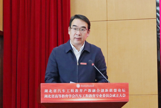 新当选主任、校长王晓在讲话中指出,汽车工程教育专业委员会秉承服务汽车行业发展的宗旨,着力提升汽车工程教育专业委员会的影响力、公信力、服务力,奋力推进湖北汽车工程教育高质量发展。