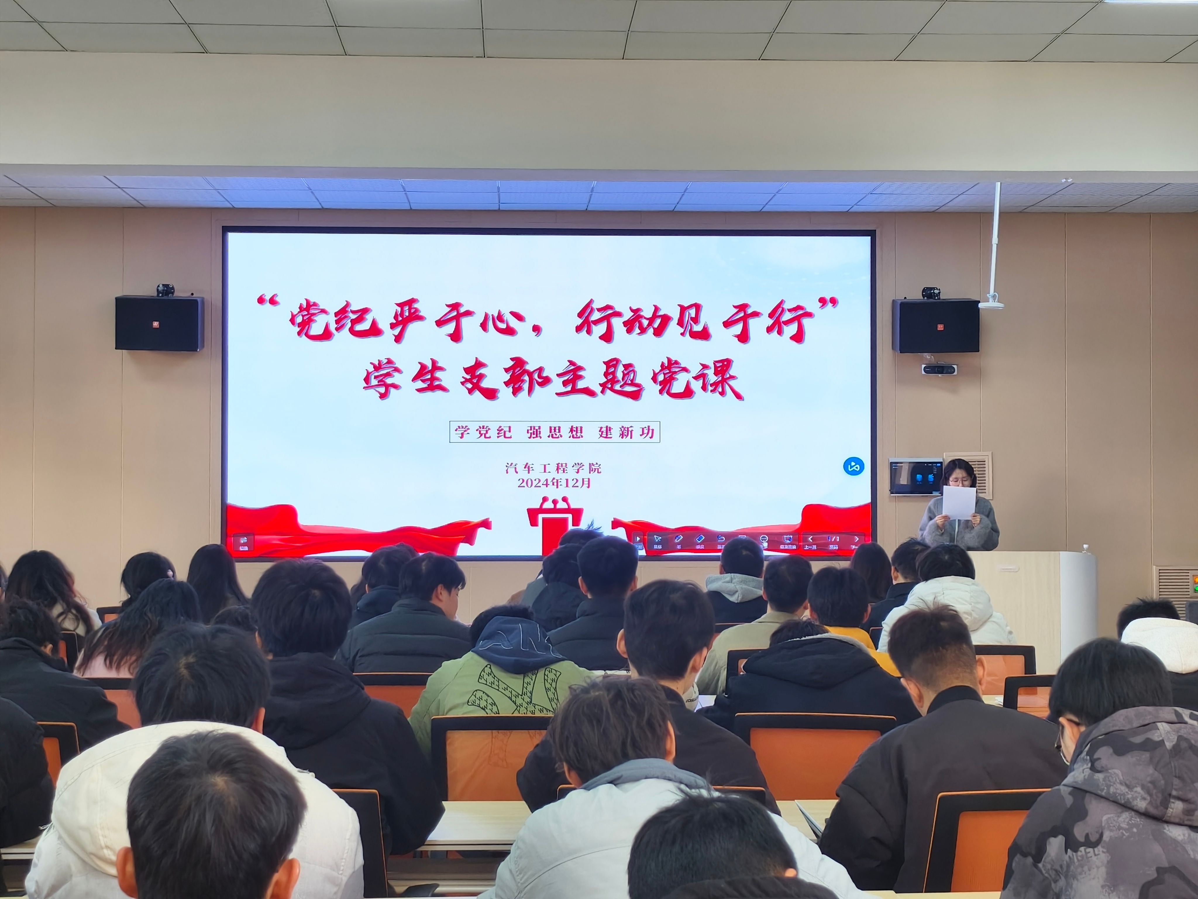 在汽车大院职工之家开展支部书记讲党课活动。此次活动聚焦党纪学习教育,旨在进一步加强学生党员的纪律意识,推动全面从严治党向纵深发展。学生党支部全体党员积极响应,共同参与了这一重要活动。