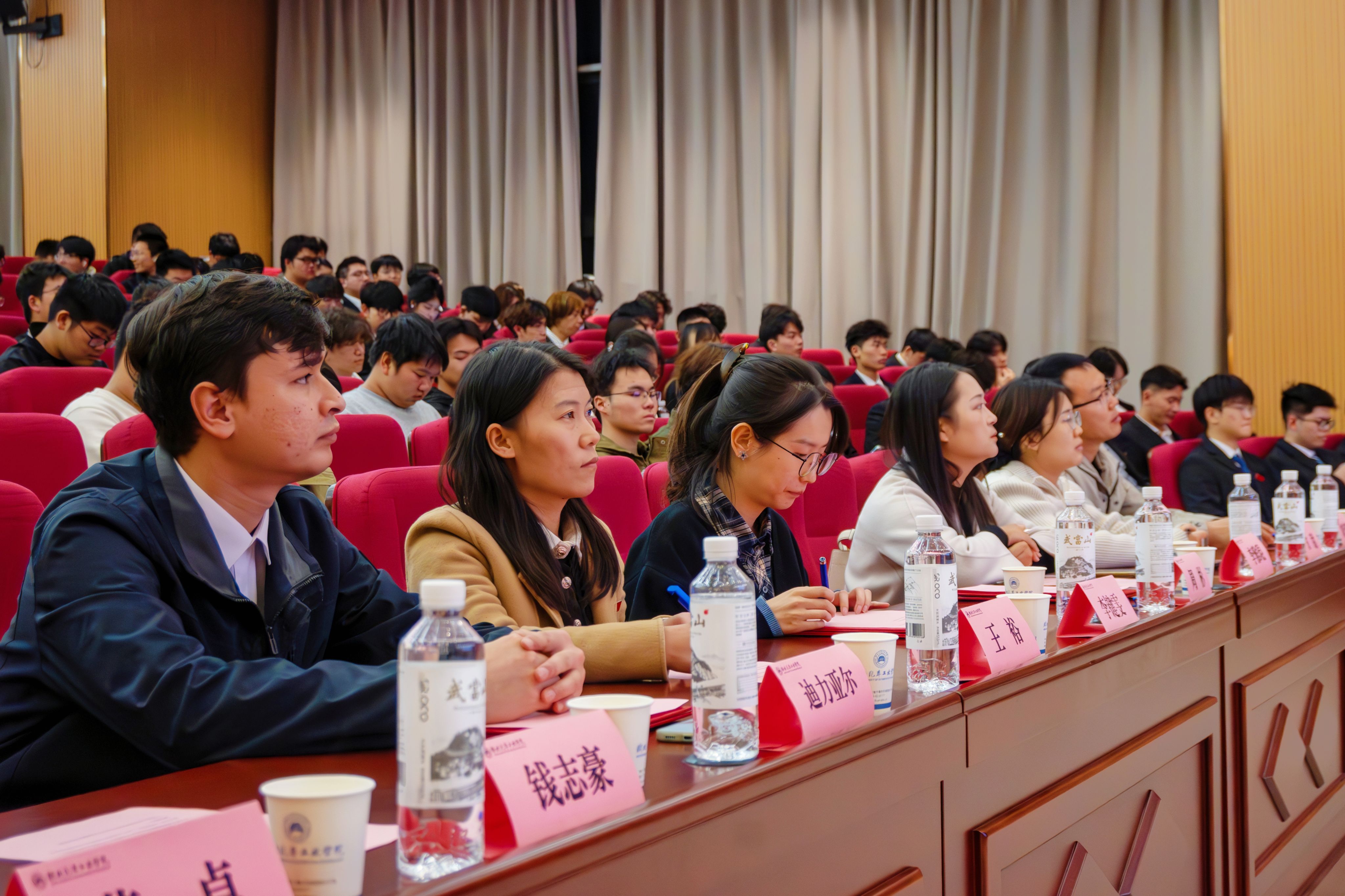 党委副书记周彬、全体学工办老师、校学生会执行主席钱志豪、校志联副主席黄卓、各兄弟学院主席团成员代表及第三十五届学生组织全体成员参与大会。