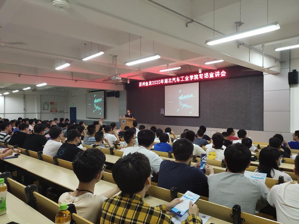 宣讲会。金龙豪华车技术部副部长杨光勉一行四人,车院学工办主任朱政、分团委书记胡霄寒以及17级全体学生参加此次宣讲会。